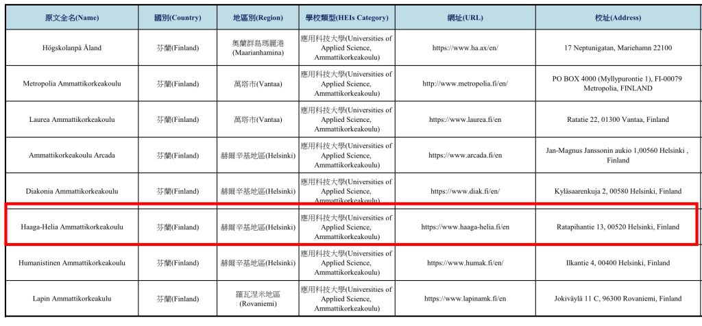 - 芬蘭教育文化部授權認證的科學應用大學。